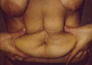 Case Number: D14I Weight: 160 lbs Height: 5' 10" Age: 35 Description: 35 year old woman who lost in excess of 125 lbs and developed an abdominal apron with associated rashes and pain. She was able to acheive maximal flattening of her stomach. | |||||||